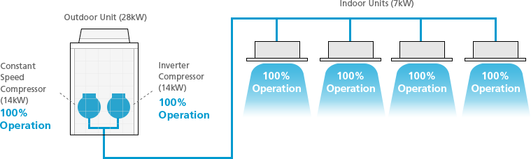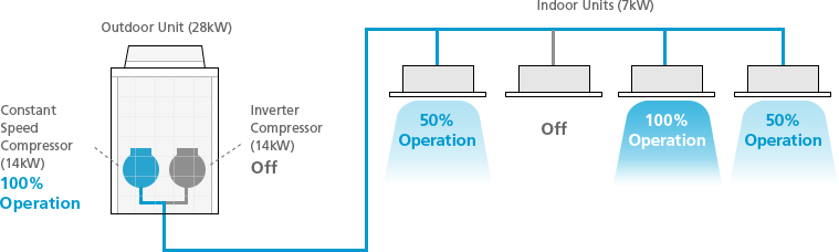By using an inverter that operates with enhanced precise temperature control and efficiency, VRV air conditioner greatly cuts energy costs and realizes an even more comfortable environment.