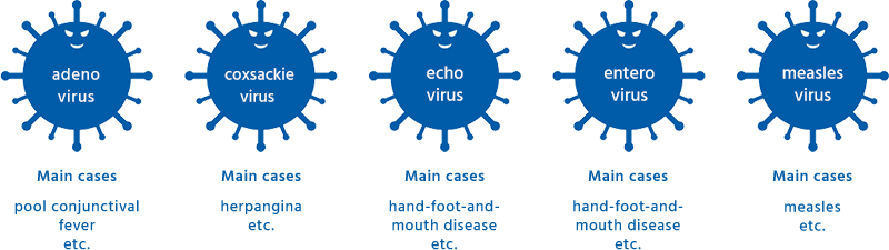 Summer colds such as pool fever, herpangina, and hand-foot-and-mouth disease are viral infections that prevail in the rainy season and summer, especially in children with weaker immunity than adults. Four major causes of these summer colds have been identified: adenovirus, enterovirus, echovirus, and coxsackie virus. In addition, measles, which spreads from spring to summer, is very infectious because of the measles virus.